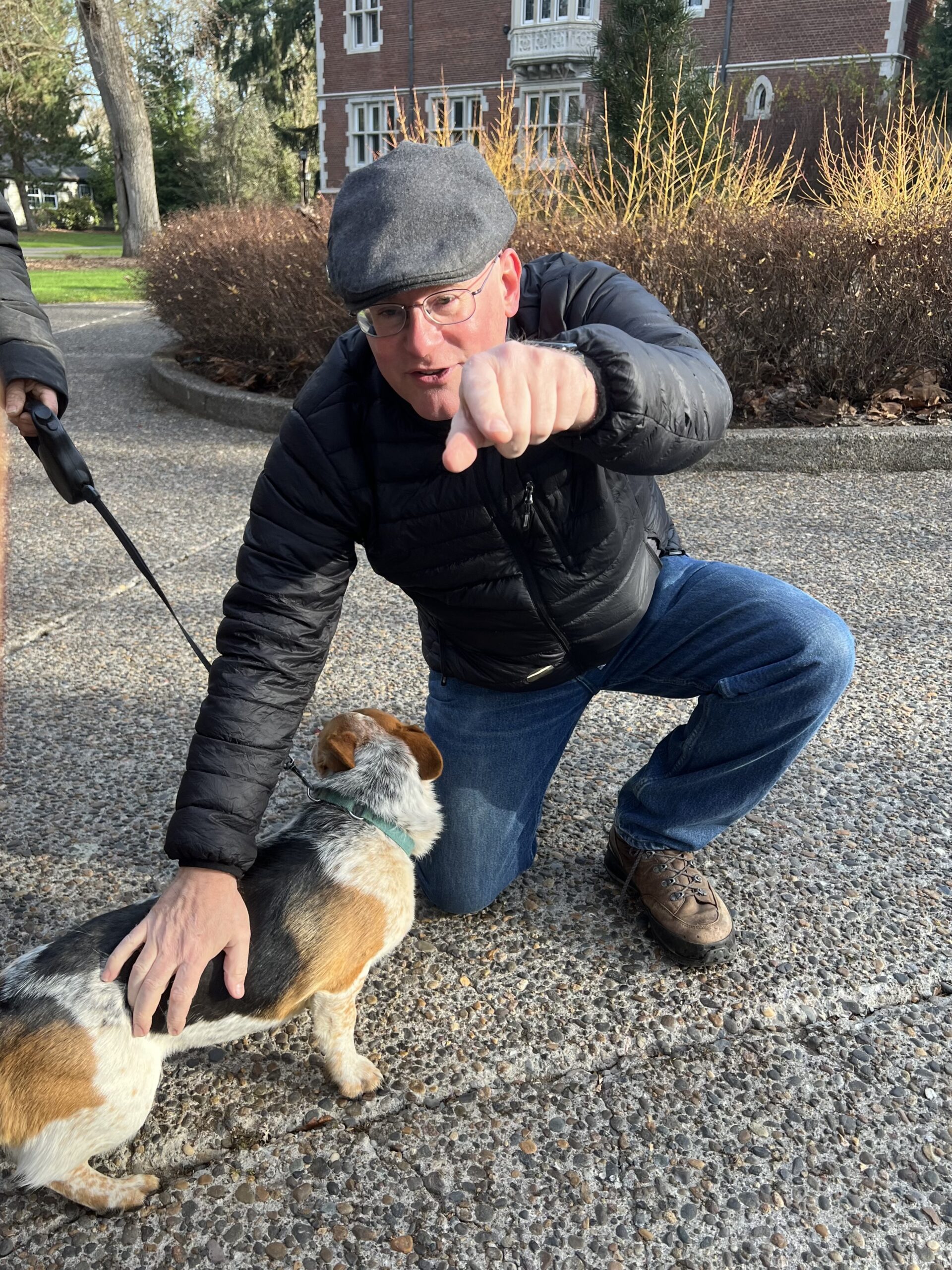 Man Trying To Get Dog To Face Camera